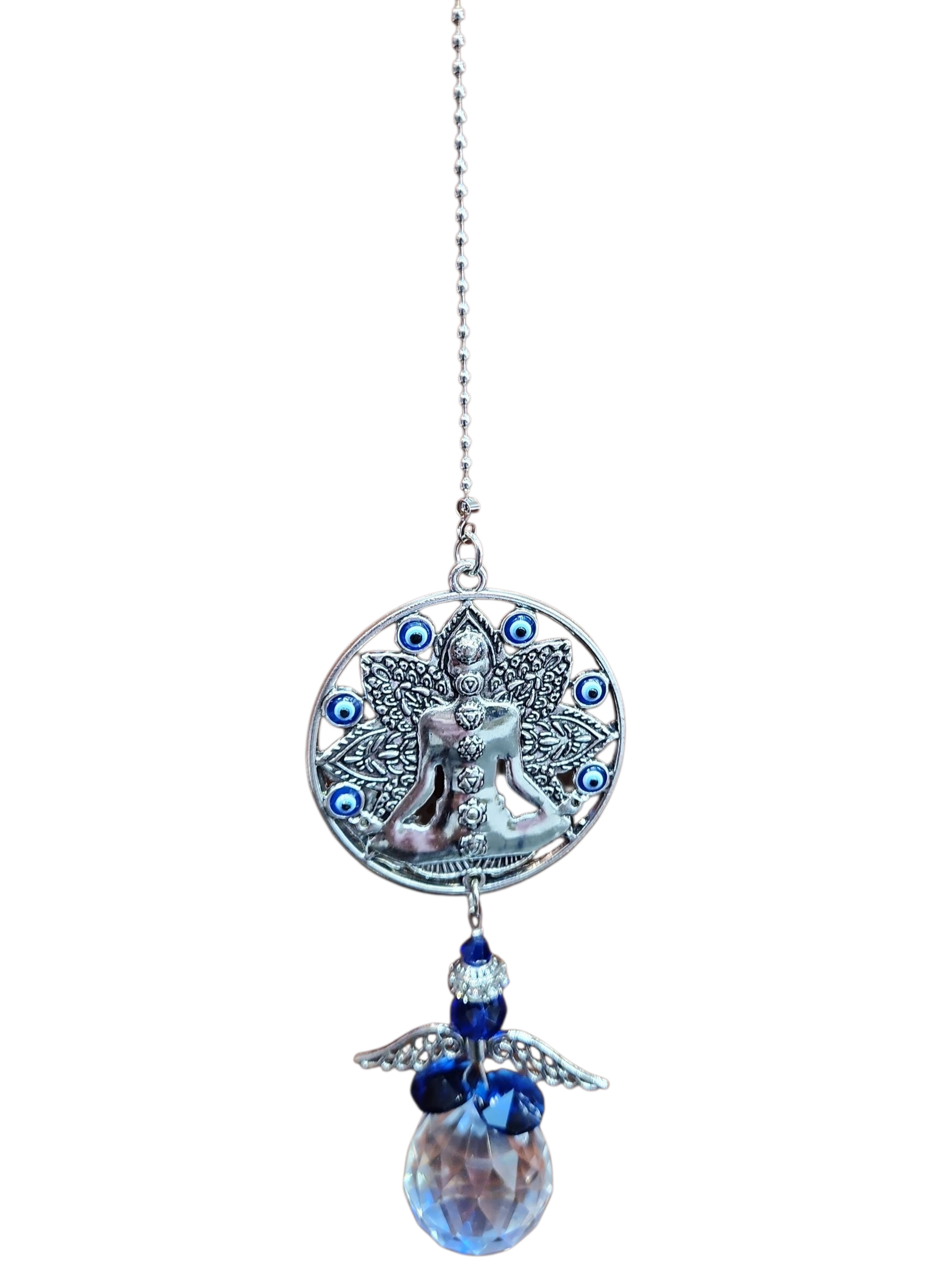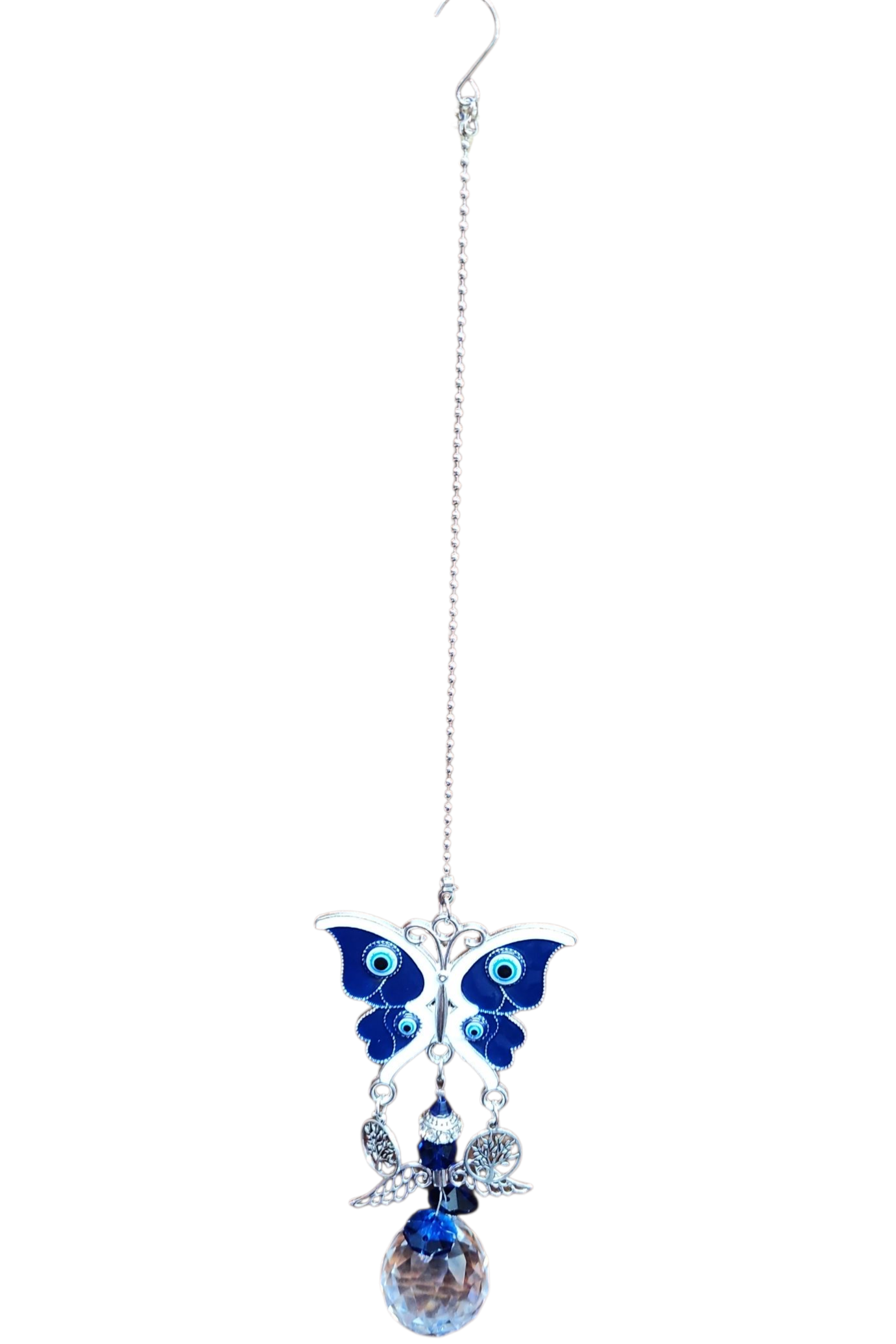 El "ojo turco con un prisma" combina la función protectora del ojo turco contra el mal de ojo con la capacidad del prisma para dispersar la luz y generar un efecto visual atractivo. El ojo turco, también conocido como nazar, es un amuleto tradicional que se cree que protege contra la envidia y las malas energías, mientras que el prisma, al refractar la luz, crea un efecto de arco iris y puede generar una sensación de luminosidad y alegría. Juntos, estos elementos forman un objeto que no solo protege, sino que también puede ser decorativo y aportar un toque de color y energía positiva.